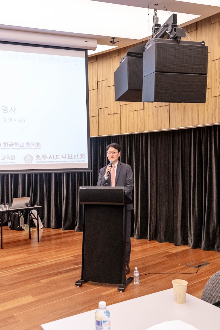 개회식에서 김정민 NSW주 호주한글학교협의회 회장은 “선생님이 행복해야 학생들이 행복하다”는 말로 교사의 행복과 학생들의 성장이 밀접하게 연결되어 있음을 강조하며, 교사들의 헌신에 대한 감사의 뜻을 전했다.